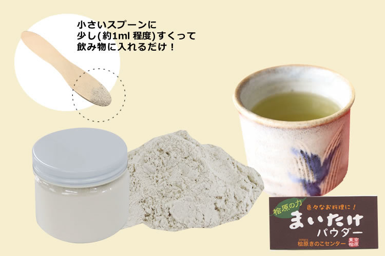 約1mlのパウダーを緑茶やお湯に煎じてお召し上がりください。